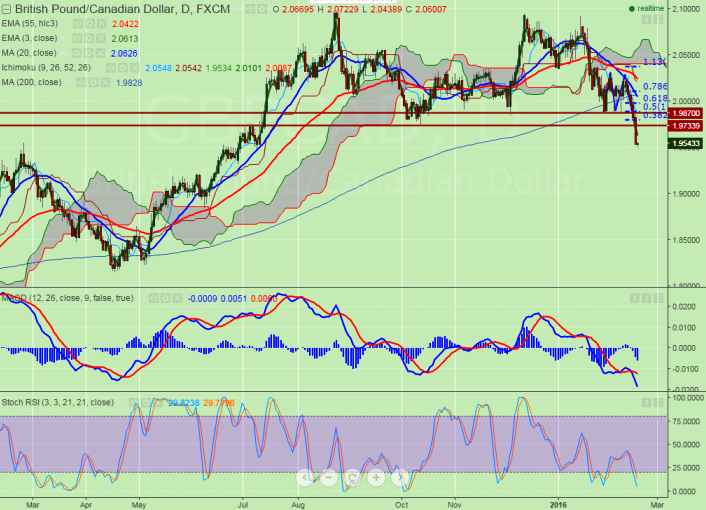 - GBP/CAD has broken major support 1.9720 and declined till 1.95031. It is currently trading around 1.9536.