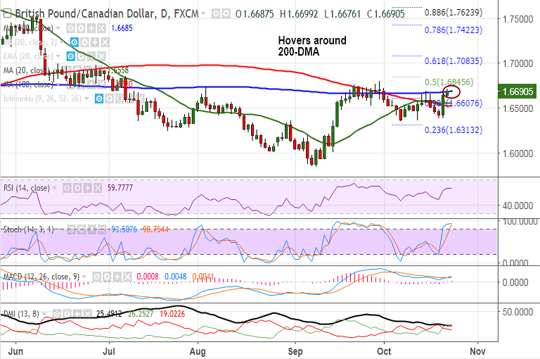 - Price action has broken above 100-DMA and is currently hovering around 200-DMA at 1.6685.