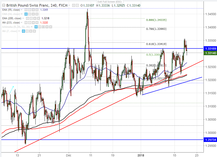 - GBP/CHF has shown a good jump after forming a bottom at 1.31340. The pair broken minor resistance at 1.3320 and is currently trading around 1.33091.