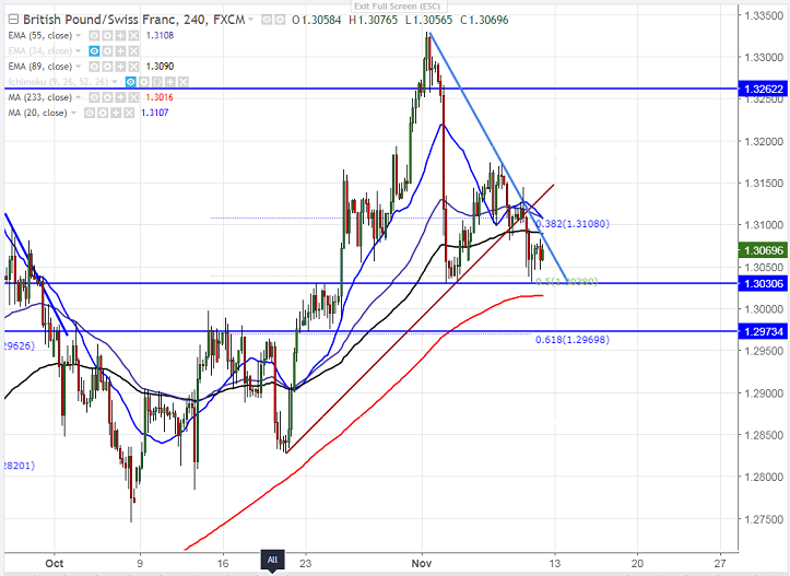 - GBP/CHF has once again recovered after hitting low of 1.30309. The pair jumped till 1.30831 at the time of writing. It is currently trading around 1.30908.