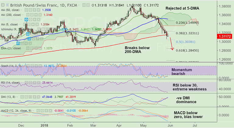 Resistance levels - 1.3160 (200-DMA), 1.3185 (5-DMA), 1.3231 (38.2% Fib)