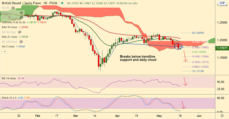 Break below major trendline support and daily cloud has strengthened downside for the pair.