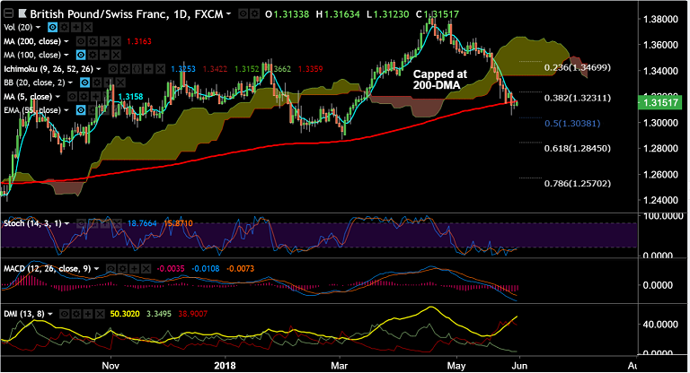 - Upside in the pair finds stiff resistance at 200-DMA at 1.3163 and decisive break above could invalidate the bearish bias.