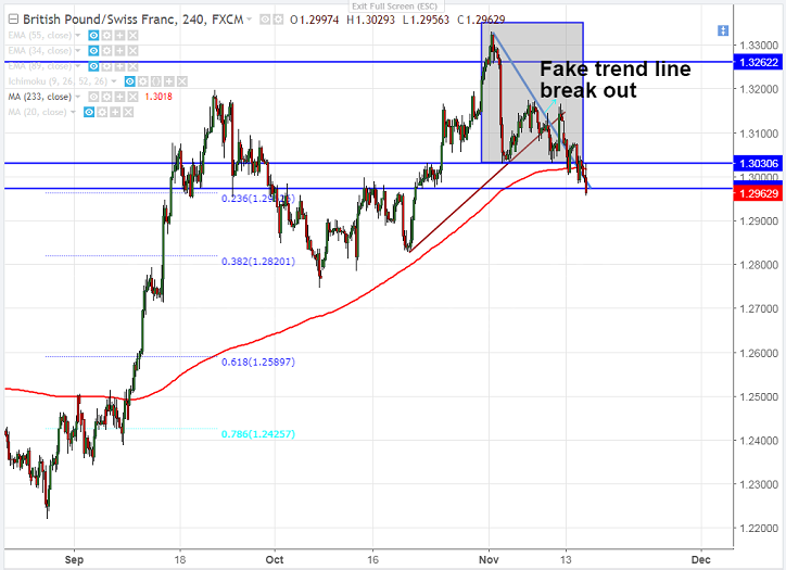 - GBP/CHF has broken major support at 1.3030 and declined till 1.29832. The pair recovered slightly till 1.30293 and is trading around 1.30045. UK jobs data came slightly weaker than expected. UK economy has added 1.1k in this month compared to forecast of 2.0k and wage growth came at 2.2% compared to previous month at 2.1%. The pair broken the low of 1.29832 made yesterday and declined till 1.29660. It is currently trading around 1.29966.