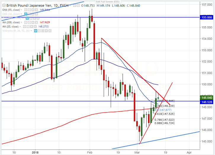 - GBP/JPY has shown a good jump of almost more than 150 pips yesterday session on account extreme bullishness of GBP against all majors. The pair hits intraday high of 149.37 and shown a minor profit booking from the high. The pair is currently trading around 148.80.