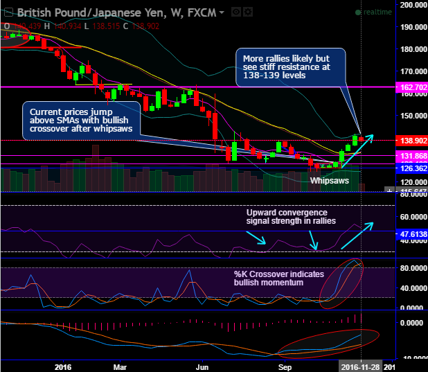 For now, more rallies are likely but see stiff resistance at 138-139 levels. The current prices are well above DMAs and 7SMA is on the verge of crossing over 21SMA which is a bullish crossover.