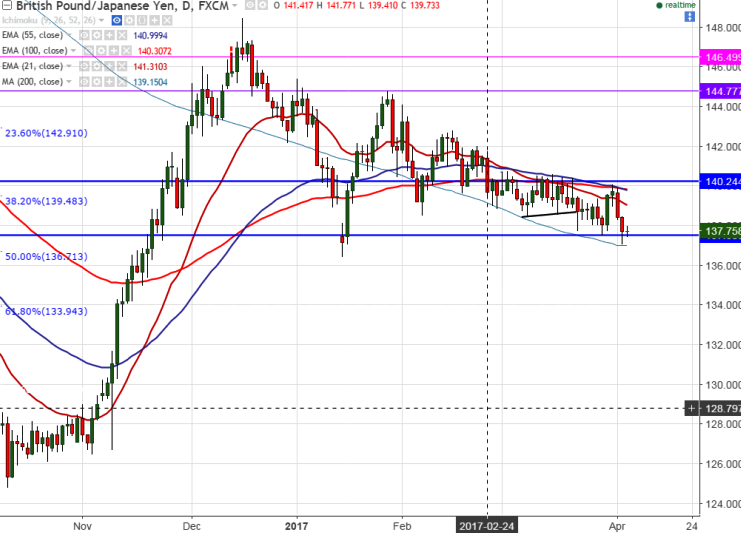 - GBPJPY broken the major support at 137.50 low formed on Mar 29th 2017 yesterday and declined till 137.08 level . It is currently trading around 137.65.