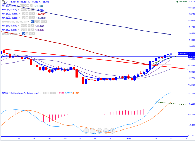 - GBP/JPY has jumped sharply after declining till 135.40 level. The pair declined till 135 and started to jump from that level. It is currently trading at 136.43.