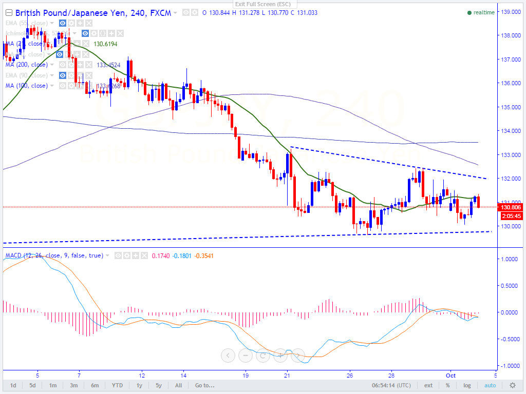 - In the 4 hours chart ,the pair is trading slightly above Tenkan-Sen (130.80) and it should break above trendline resistance 132.10 for further bullishness. Any break above 132.10 will take the pair to next level till 132.45/133.26 in the short term.