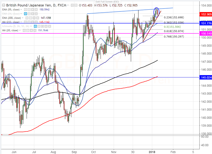 - The near term support is around 152.60 (7- day MA) and any break below will drag the pair till 152/151.50.