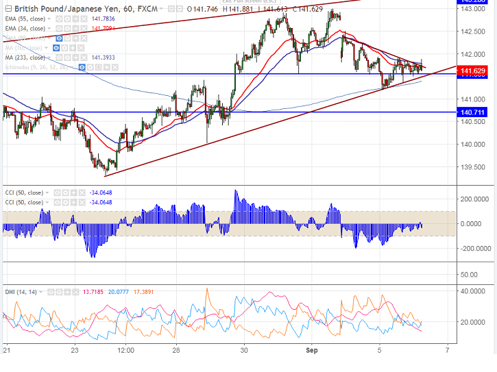 - On the lower side, 141.38 (233 –H MA) will be acting as nearby support and any break below will drag the pair down till 140.40/140/139.30.