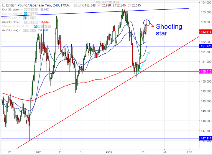 - The pair is facing major support at 152 (55- 4H EMA) and any break below will drag the pair to next level till 151.64 (4H Kijun-Sen)/151.50/151.07 (233- 4H MA). Short term bullish invalidation is only below 150.80.