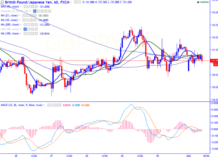 - The pair has recovered sharply after declining till 130.43 on Friday. GBP/JPY jumped till 131.95 and once again declined from that level. It is currently trading around 130.80.