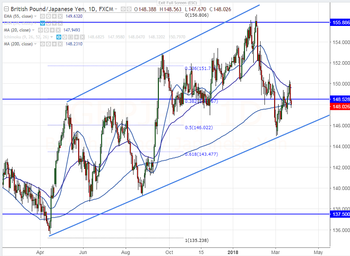 - GBP/JPY declined more than 200 pips yesterday on account sudden jump in Yen due to increase of safe haven demand. Yen jumped yesterday after US President imposes trade tariff for 100 products on China. The pair hits low of 147.69 and is currently trading around 148.02.