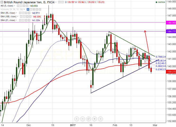 - GBP/JPY major support is at 139.05 and any close below 200 –day MA will drag the pair till 138.50 (7th Feb 2017 low/136.45 (Jan 16th low).
