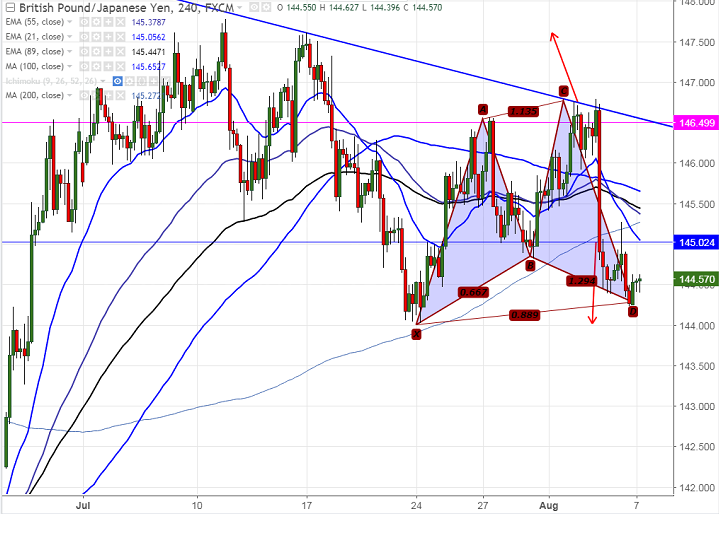 - On the lower side, near term intraday support is around 144.38 and any break below will drag the pair down till and any break below 144.38 will drag the pair till 143/142.30.