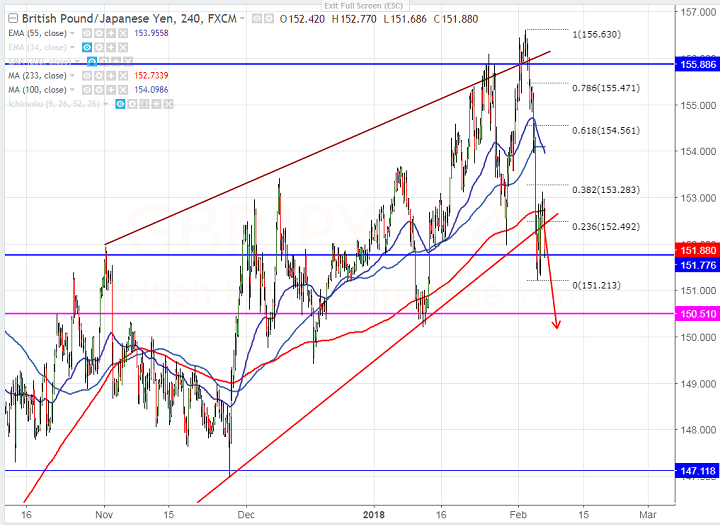 - GBP/JPY shown a minor jump above 153 and started to decline sharply from that level. The Japanese yen was trading g strong against all majors for the past two days on global equity sell-off. USD/JPY has started to fall after a minor jump till 109.71 level. The pair hits low of 151.68 and is currently trading around 151.96.