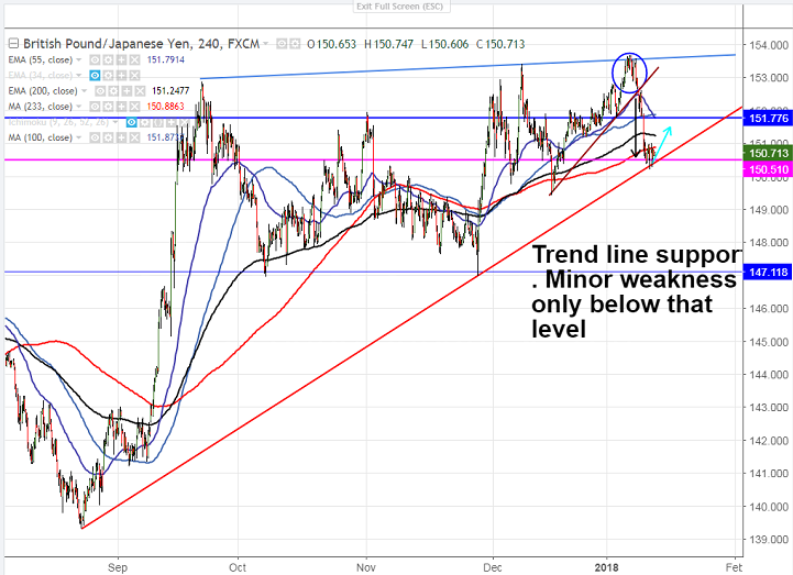 - The pair has taken support near major trend line and shown a minor jump 150.97 almost 60 pips. Any break below 150.25 (trend line 139.30 and 146.97) and any break below will drag the pair to next level till 149.40. Short term bearishness only below 149.40.