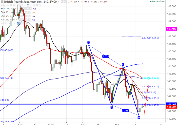 - The pair has formed bullish AB=CD pattern in the 4 hour chart and any further bearish continuation can be seen only below 140.70.