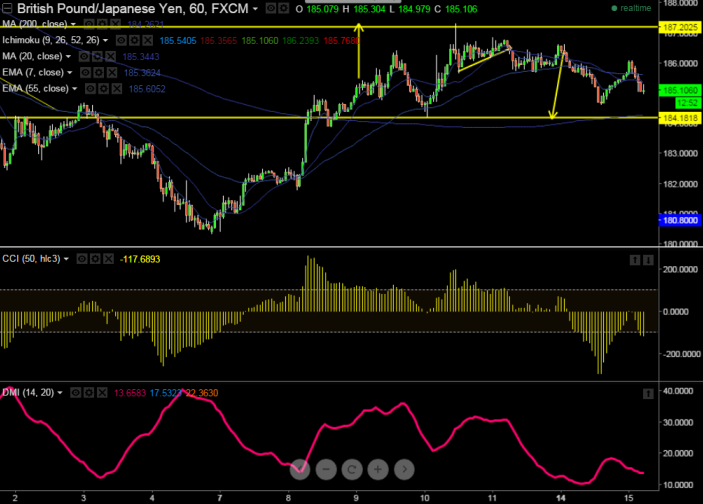 It is good to sell on rallies around 185.75-80 with SL around 186.65 for the TP of 184.20