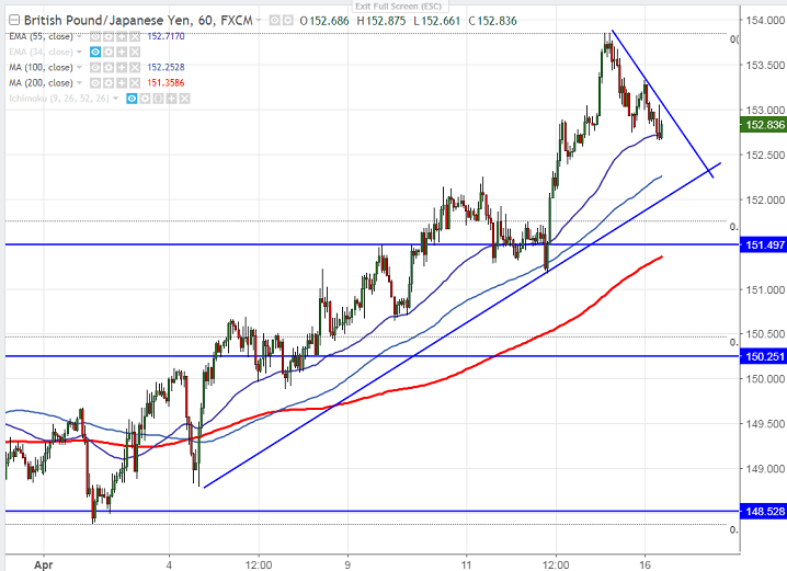 - On the lower side, near term support is around 152.25 (100- H MA) and any close below will drag the pair till 151.35 (200- H MA)/150.05.