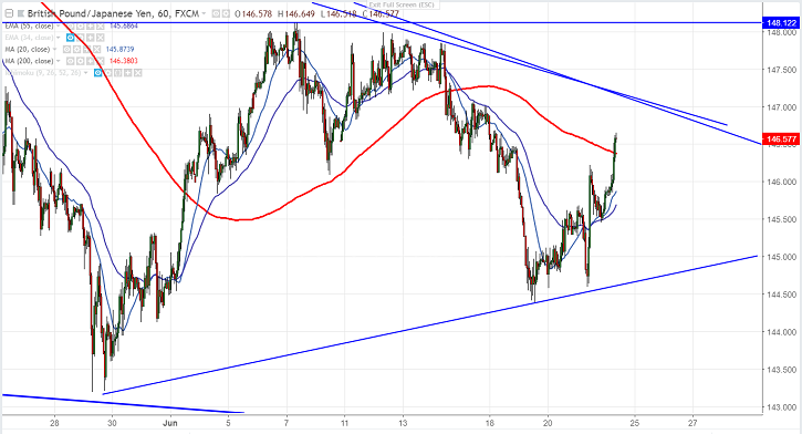 - The pair is trading well above 200- H MA at 146.39 and if it closes above that level in hourly chart,a jump till 147.20/148 likely.