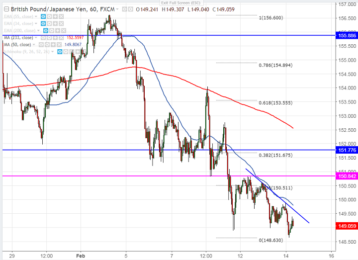 - GBP/JPY continuing its weakness for fourth consecutive day and declined almost more than 100 pips for the day in the Asian Session after recovering till 149.87 yesterday. The pair broken the low of 148.88 made on Feb 9th and declined till 148.63. It is currently trading around 149.02.