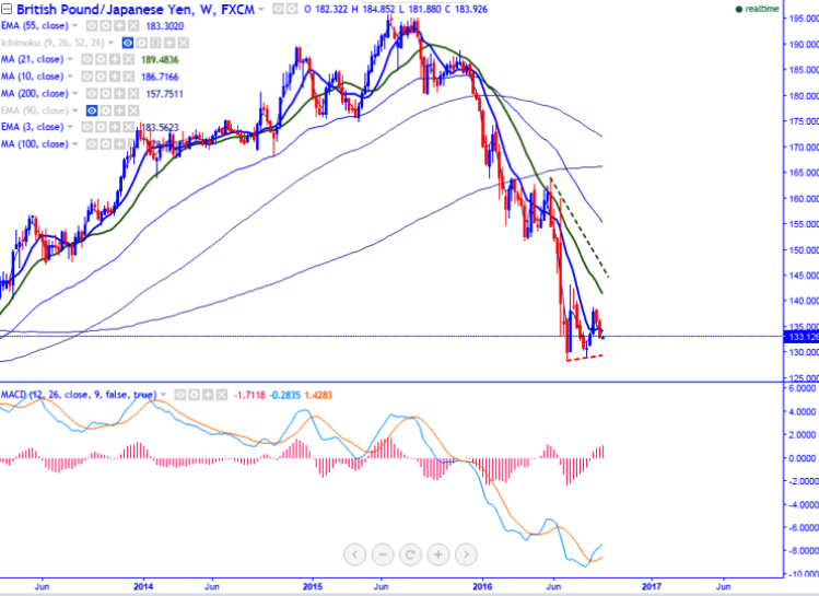 - Major resistance – 134.30 (3 W EMA).