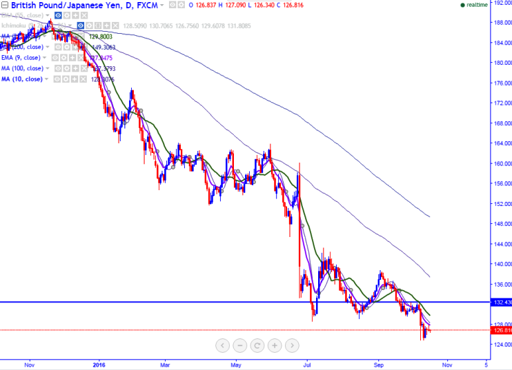 - GBP/JPY jumped drastically from the low of 125.92 made on 13th Oct 2016.It is currently trading around 126.79.