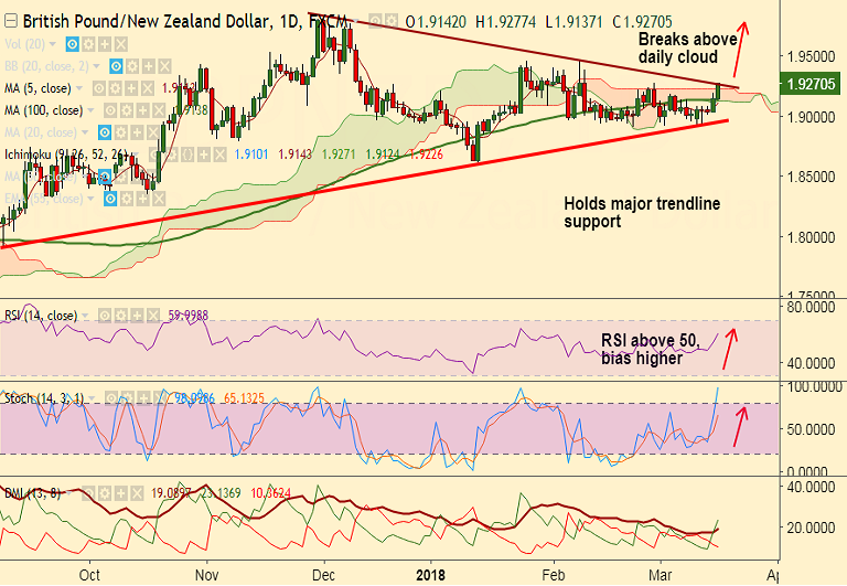 - The pair has broken above daily cloud and technical studies have turned bullish.