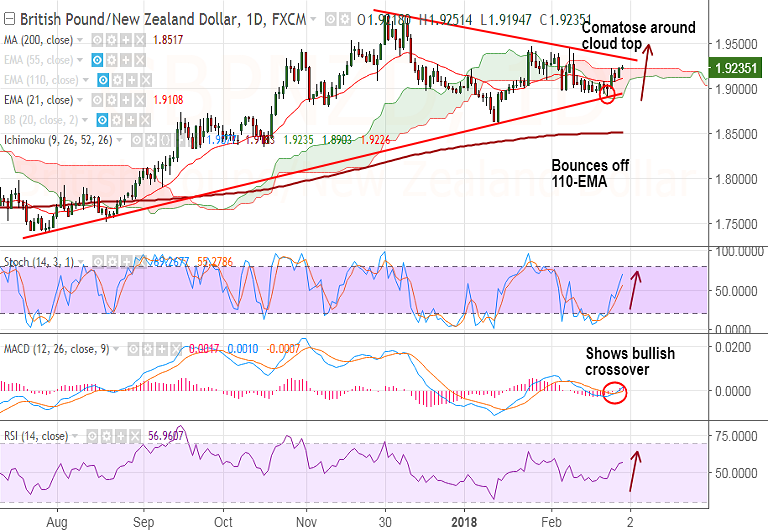 - GBP/NZD comatose around daily cloud top at 1.9226, break above to see further upside.