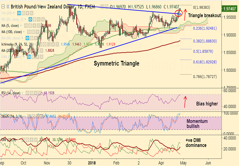 Support levels - 1.96 (Triangle top), 1.9597 (5-DMA), 1.9448 (21-EMA)