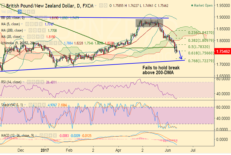 - On the daily charts, the pair has failed to hold break above 200-DMA on Monday's trade.