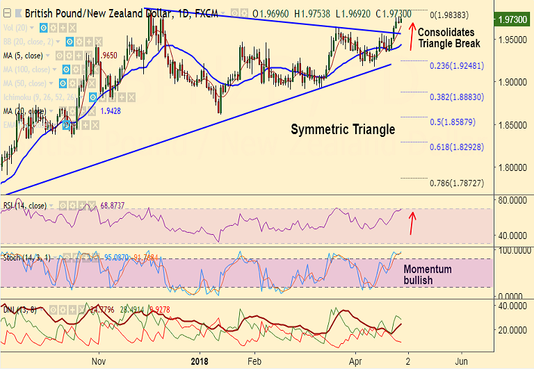 Support levels - 1.9651 (5-DMA), 1.96 (Triangle top), 1.9428 (20-DMA)