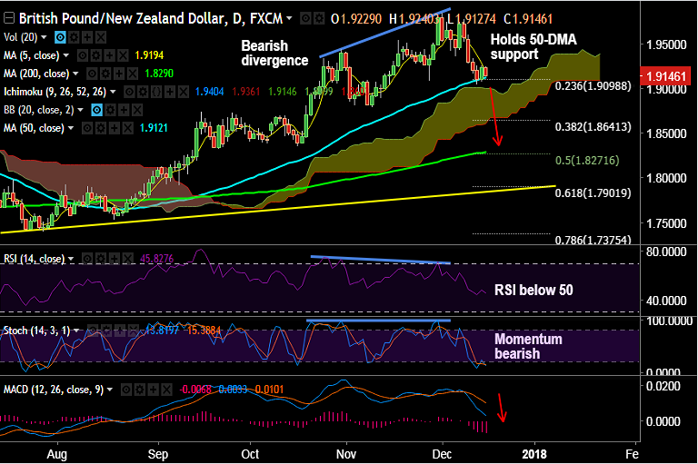 - GBP/NZD holds 50-DMA support at 1.9121, we see further weakness only on decisive break below.