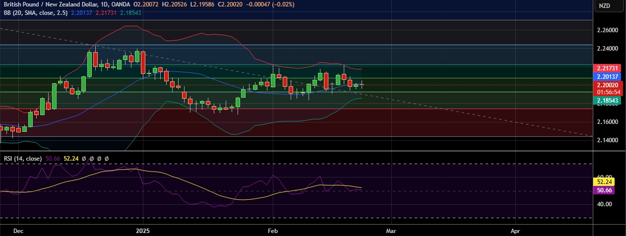 • Immediate resistance is located at 2.2078 (38.2%fib), any close above will push the pair towards 2.2186 (Higher BB)