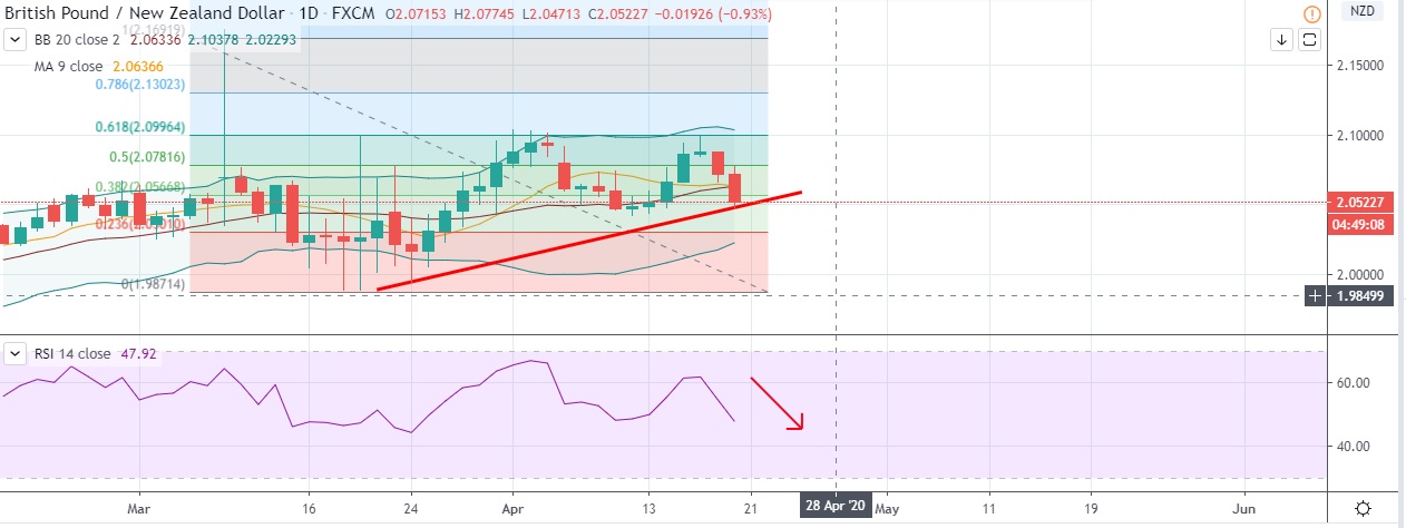• GBP/NZD dipped on Monday, as sterling attracted seller after Britain’s death toll from the novel coronavirus increased.