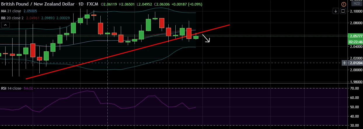 • Strong support is seen at 2.0482 (55 DMA) and break below could take the pair towards 2.0382 (Lower BB).