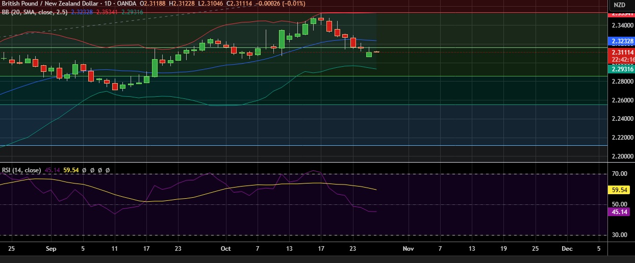• Immediate support is seen at 2.3058(Daily low) and break below could take the pair towards 2.2938(Lower BB).