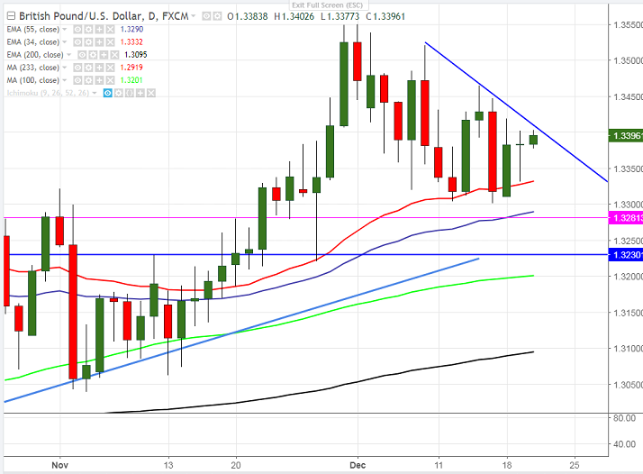 - The near term resistance is around 1.3420 (trend line joining 1.35204 and 1.34654) and any break above will take the pair to next level till 1.3470/1.3520. Bullish continuation only above 1.3550.