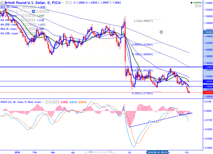 - In daily chart, MACD is showing Bullish divergence and this implies that slight jump till 1.2860 (7 –day EMA) is possible.