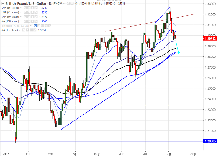 - The near term support is around 1.2948 (55- day EMA) and any break below will drag the pair till 1.2845 (61.8% fibo).