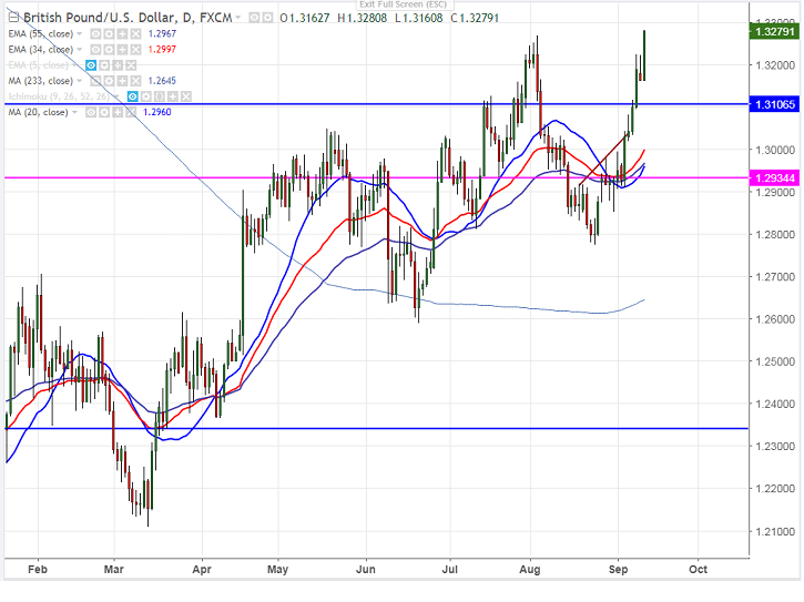 - The pair has broken major resistance of 1.32680 high made on Aug 3rd 2017 and jumped slightly till 1.32729 at the time of writing. Any break above 1.32680 confirms major bullishness, a jump till 1.3300/1.3345/1.3400 likely.