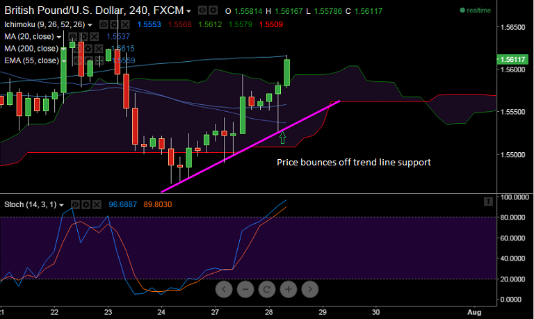 - Breach below could take the pair to 1.5570 (4h 50 MA) and then to 1.5533 (Trendline support)