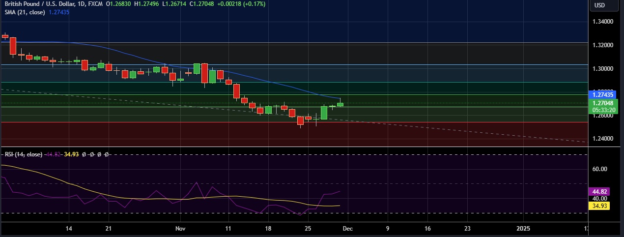 • Immediate resistance is located at 1.2748( 21SMA), any close above will push the pair towards 1.2777(50%fib)
