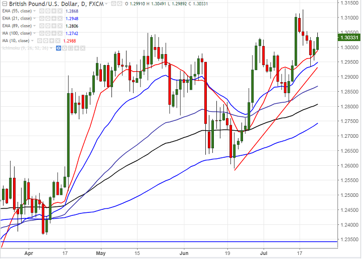 - Technically, near term support is around 1.2930 (21- day MA) and any break below will drag the pair till 1.2857 (daily Kijun-Sen)/1.28118 (Jul 12th low).