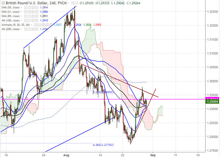 - The near term resistance is around 1.2938 (hourly Tenkan-Sen) and any break above will take the pair till 1.29785/1.3000/1.3030.
