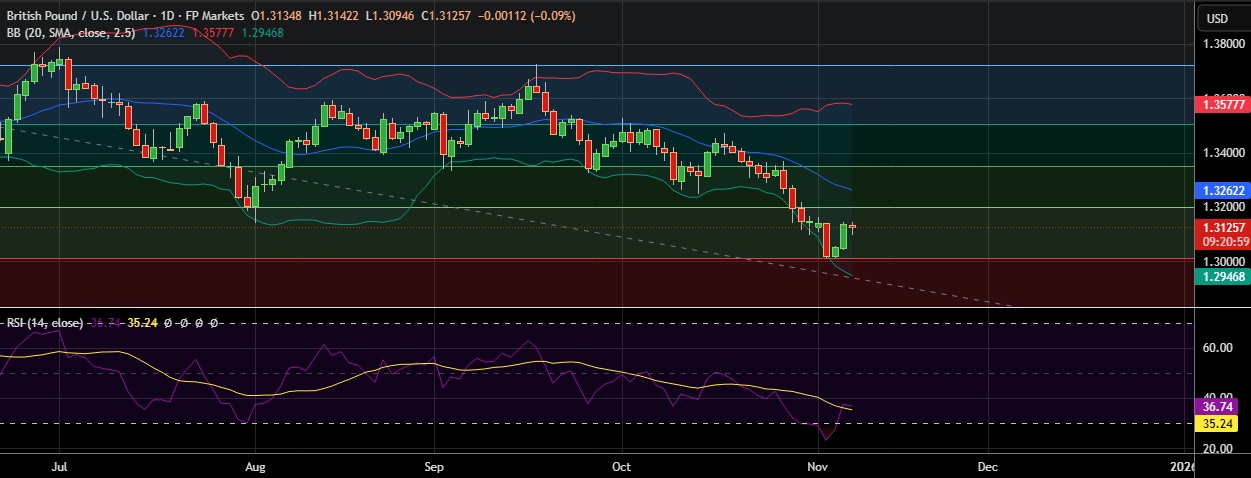 • Strong support is seen at 1.2980(23.6%fib) and break below could take the pair towards 1.2945(Lower BB).