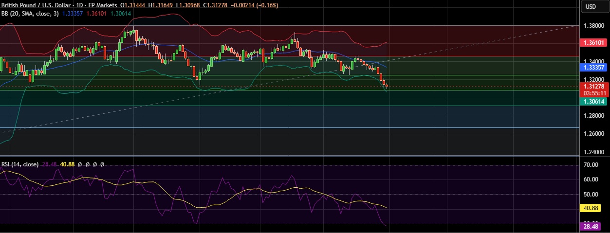 • Strong support is seen at 1.3080(50%fib) and break below could take the pair towards 1.3000(Psychological level).