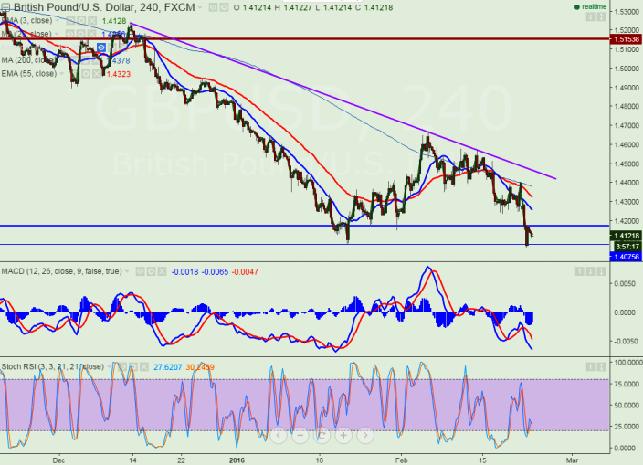 - Cable has made a low of 1.40573 and slightly recovered till 1.41678 from that level. It is currently trading around 1.41228.